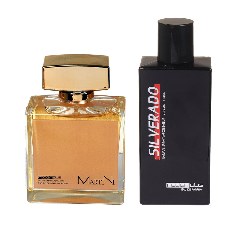 ادو پرفیوم مردانه رودیر پلاس مدل Silverado با رایحه خنک حجم 100 میلی لیتر به همراه ادو پرفیوم مردانه رودیر پلاس مدل Martini با رایحه تلخ حجم 100 میلی لیتر