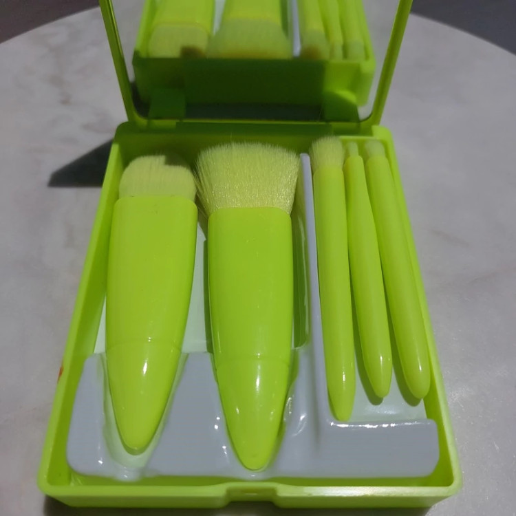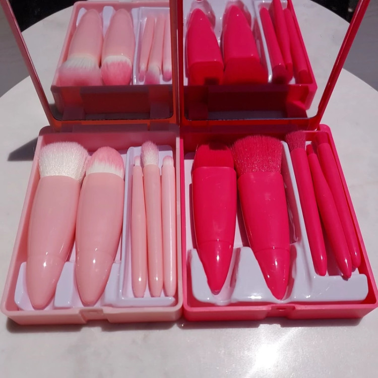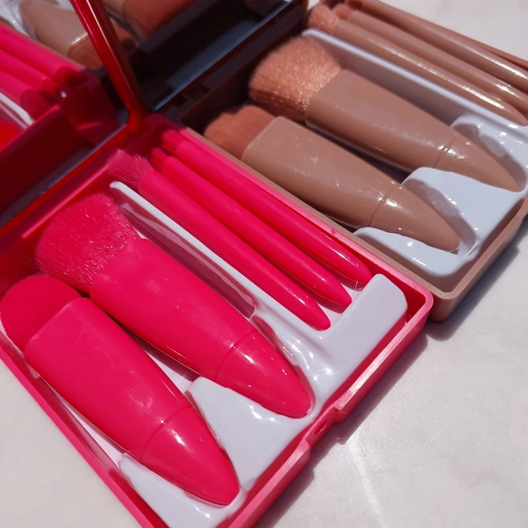 دارای 4 رنگ جذاب 5 تکه براش کاربردی دارای آینه پرتراکم بدون ریزش بسیار نرم و با کیفیت قابل شستشو