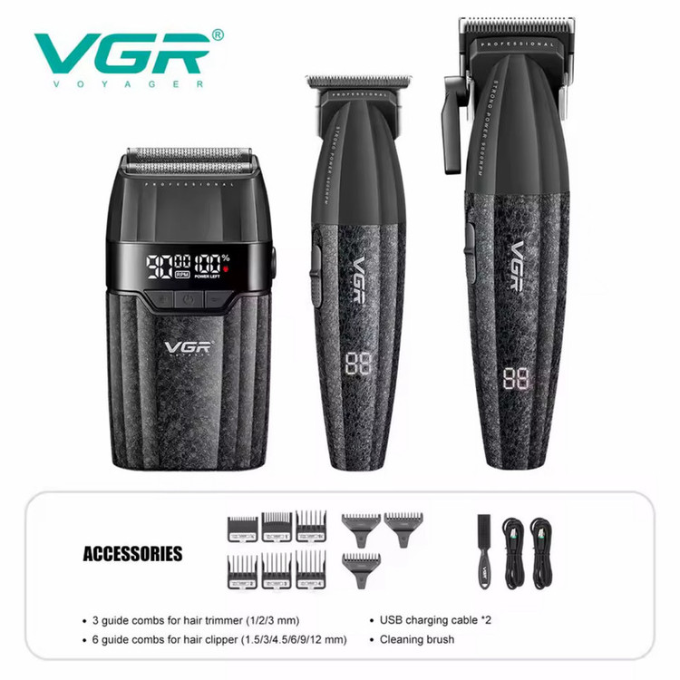 ماشین اصلاح موی سر و صورت شارژی وی جی ار مدل V-640 s3 مجموعه 3 عددی