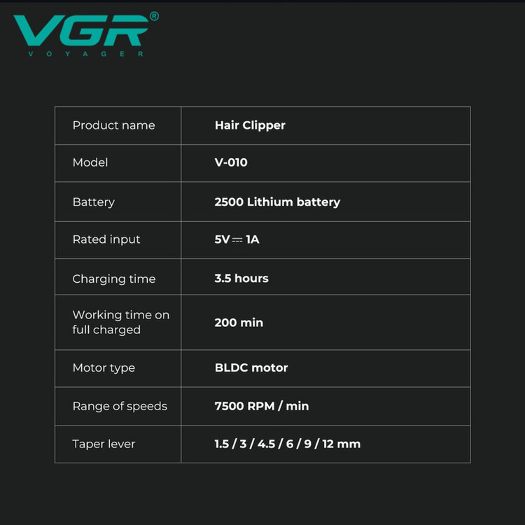 سایر مشخصات : جنس تیغهها: سرامیک و Metallurgic Powder ، نوع: حجم زن ، مناسب: فید و سایه زنی ، دارای اهرم تنظیم درجه ، بیشترین دور موتور: 7500 دور در دقیقه ، منبع انرژی: باتری 2600 میلی آمپر ، طراحی: Ergonomic ، صفحه نمایش: دارد