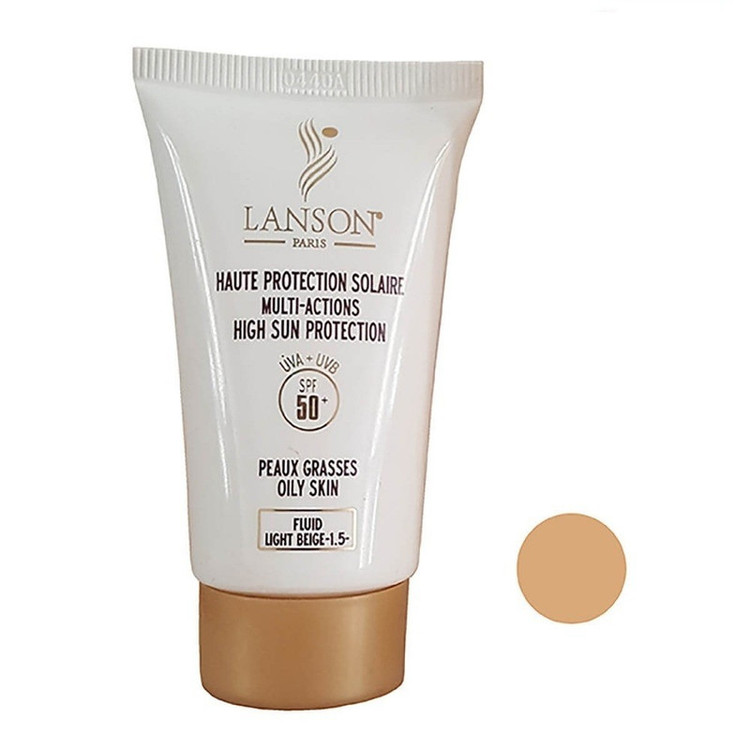 فلوئید ضد آفتاب رنگی لانسون مدل SPF60 شماره 1.5 محافظ UVA ،UVB، مناسب پوست چرب حجم 40 میلیلیتر